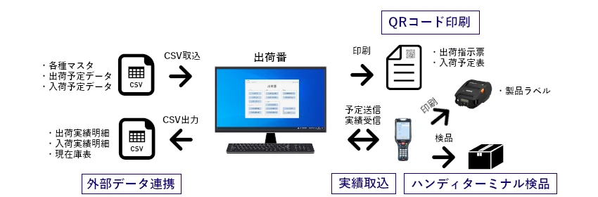 入荷処理は予定データが無くても使えます。出荷処理は検品機能を発揮する為、出荷予定データ(売上データ)が必要となります。